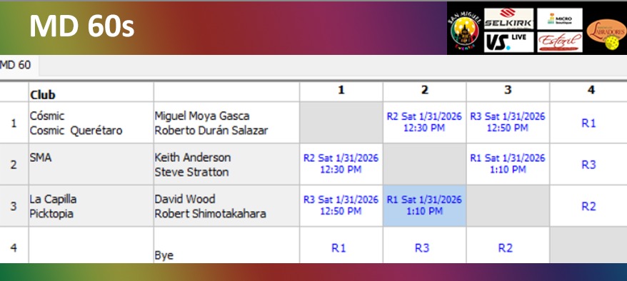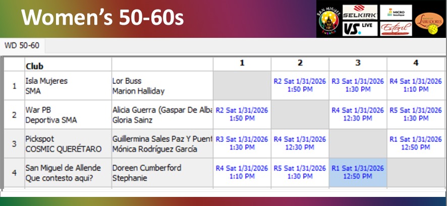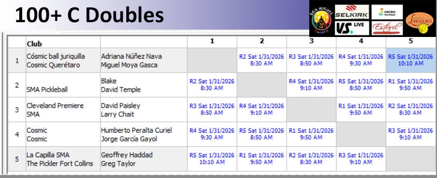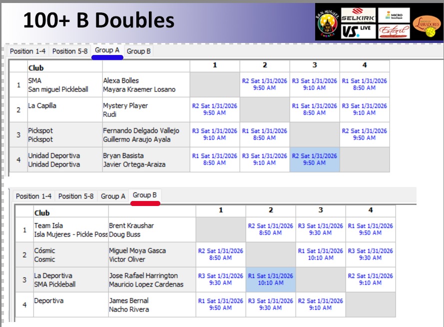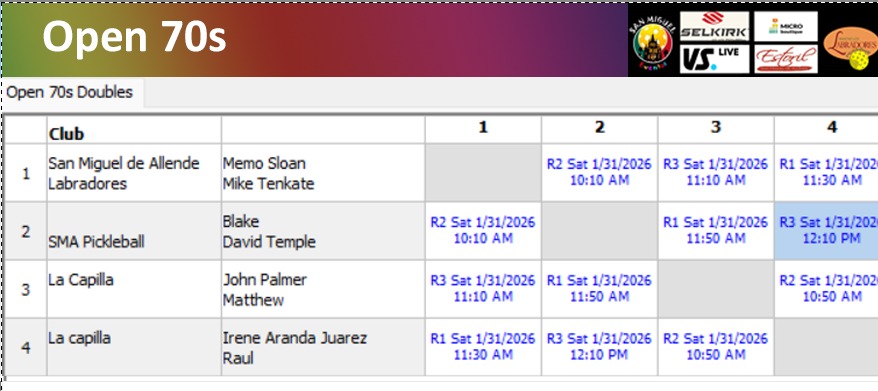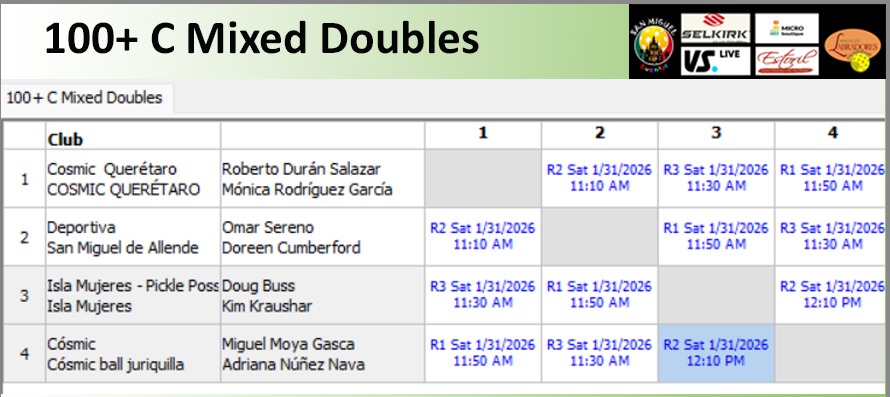 Match times are now posted! You can click on your name for your personal schedule! ¡Ya están publicados los horarios de los partidos! ¡Puedes hacer clic en tu nombre para ver tu horario personalizado! https://www.tournamentsoftware.com/tournament/5CBB16C2-7847-43E2-82FD-DE33FA72BC0E/players   ( Don’t click on any ads – it does NOT ask for money!)